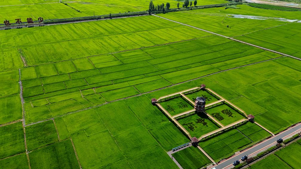 7月18日拍摄的吉林省和龙市光东村的连片稻田(无人机照片)。新华社记者 邵泽东 摄
