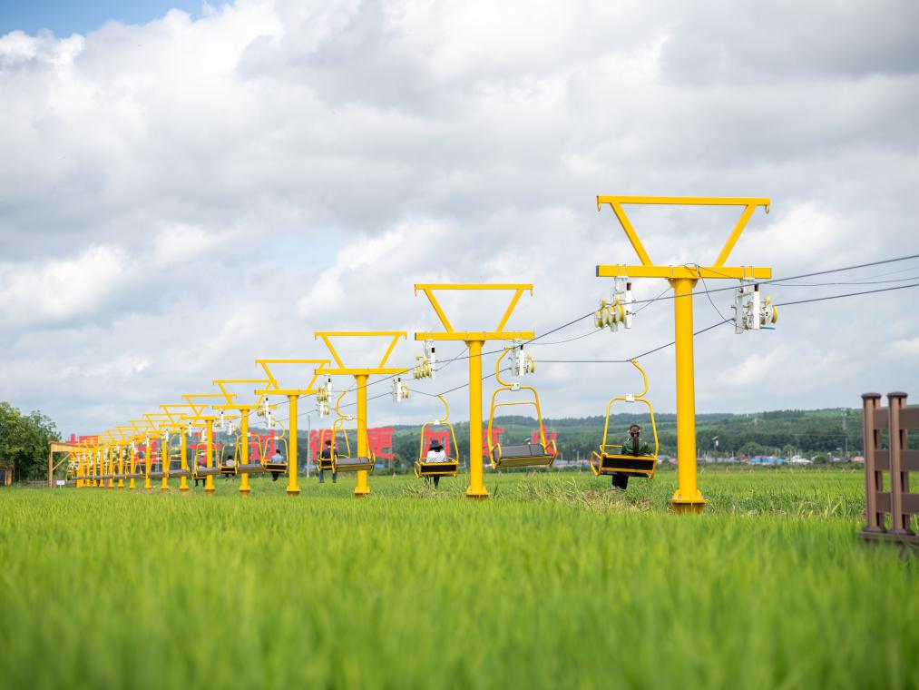 凭借优美田园风光、朝鲜族民族特色,村子里整合闲置宅基地,发展农旅融合产业项目。稻田亲子乐园、稻田小火车、螃蟹乐园等游玩项目被有机融入到稻田中。“今年,我们还新上了低空缆车项目,深得游客喜爱。”铭睿文旅集团董事长助理金亨宇说。