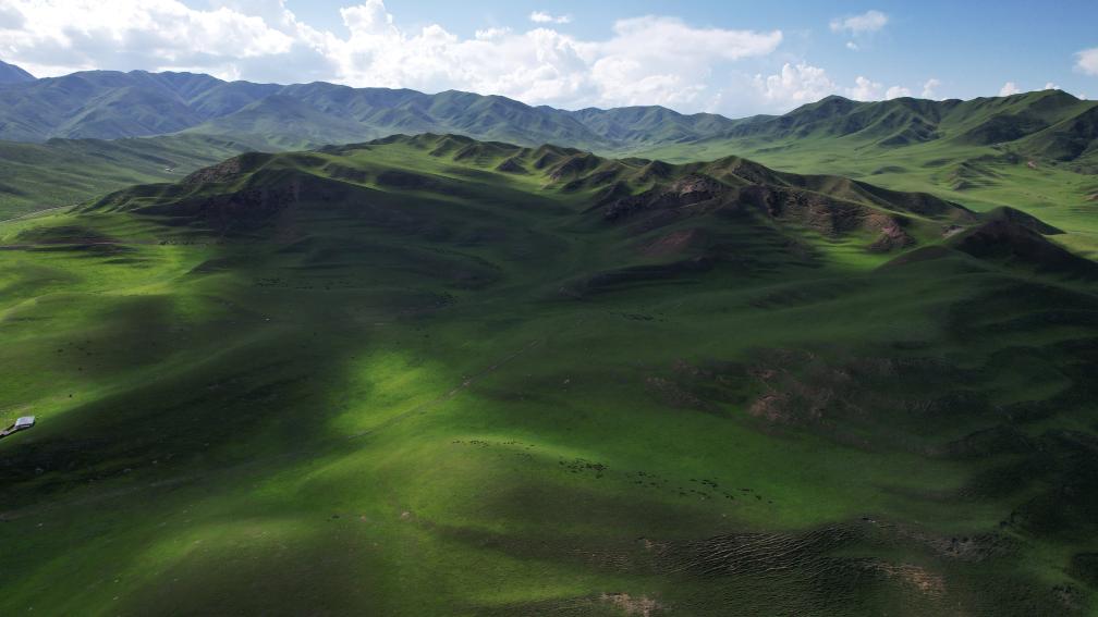 甘肃省甘南藏族自治州桑科草原风光(无人机照片)。新华社记者 陈斌 摄