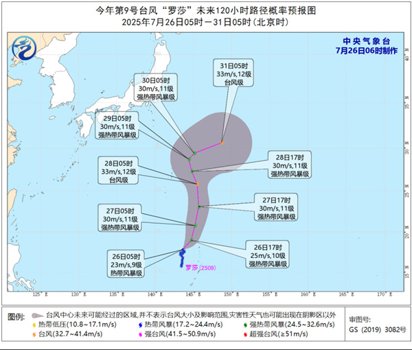 今年第9号台风“罗莎”(热带风暴级)的中心今天早晨5点钟位于关岛塞班西北方向大约365公里的西北太平洋洋面上,就是北纬17.8度、东经143.6度, 中心附近最大风力有9级(23米/秒),中心最低气压为990百帕,七级风圈半径120-250公里。