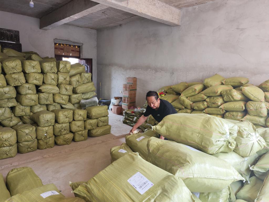 7月17日,工作人员打包猫尾草快递。新华社记者 刘克英 摄