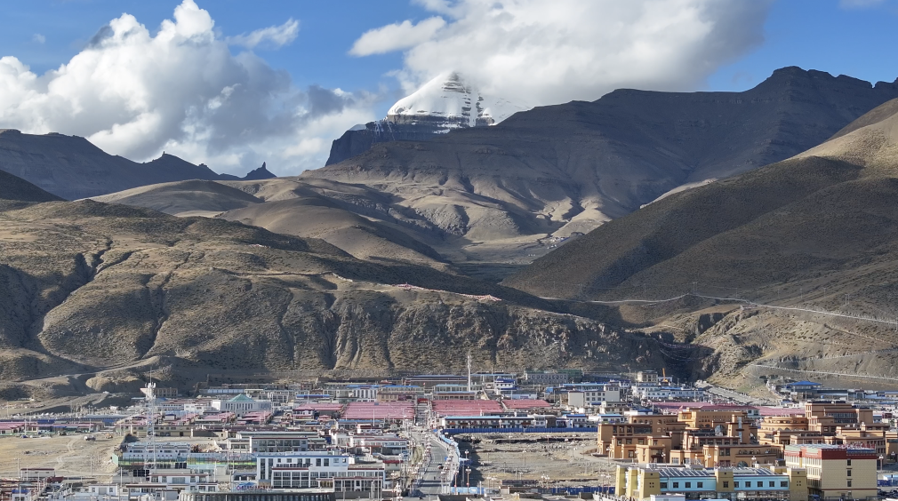 云雾渐散,清晨的阳光洒落在冈仁波齐雪白的山体上,山脚下的塔尔钦国际旅游小镇正缓缓苏醒。背包客在商铺前驻足,挑选徒步所需的装备;返乡创业的青年在新开的文创店里摆好手工饰品,准备迎接一天的客流。