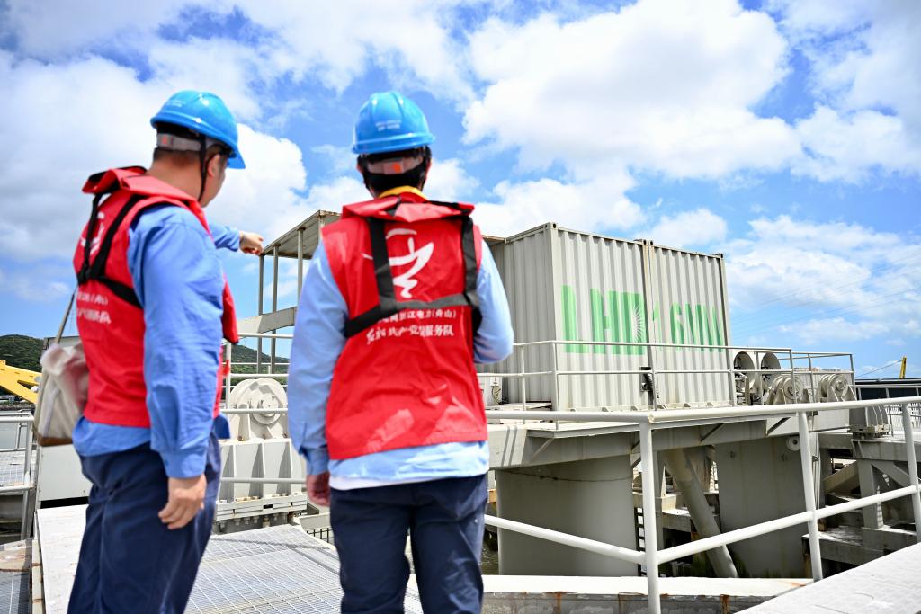 图为国网舟山供电公司工作人员为浙江LHD海洋潮流能发电工程开展日常巡检工作。新华社记者刘铭翔 摄