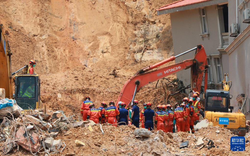8月8日,救援人员在广州市白云区山体垮塌现场开展搜救。 新华社记者 王瑞平 摄