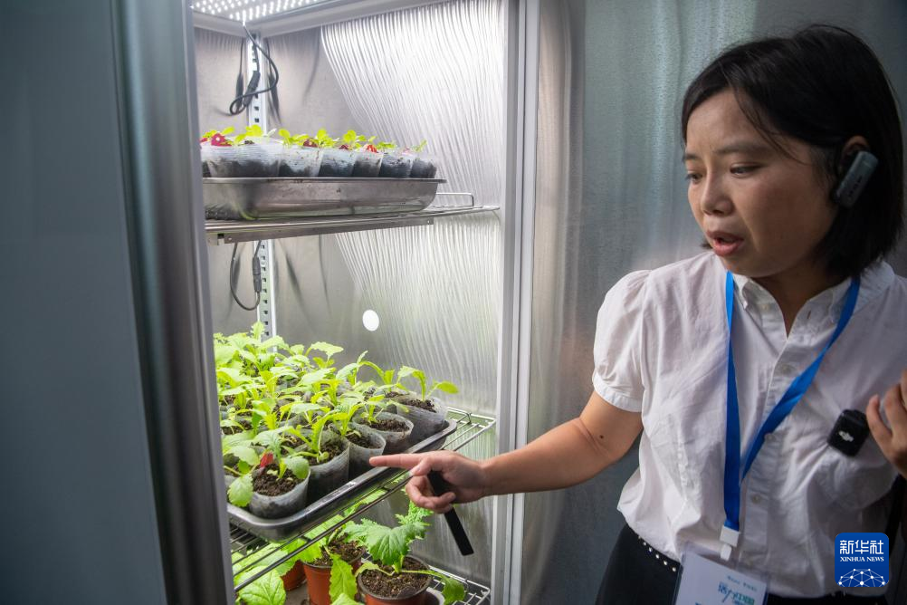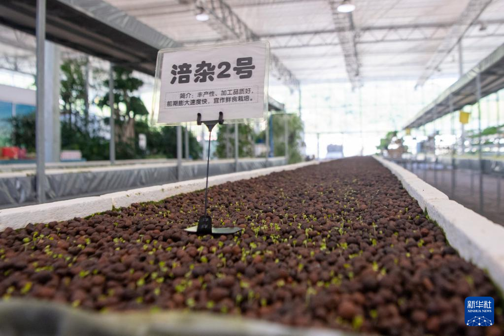 8月14日,在重庆市涪陵区国家现代农业产业园,工作人员在介绍科技赋能的青菜头培育技术。新华社记者 唐奕 摄