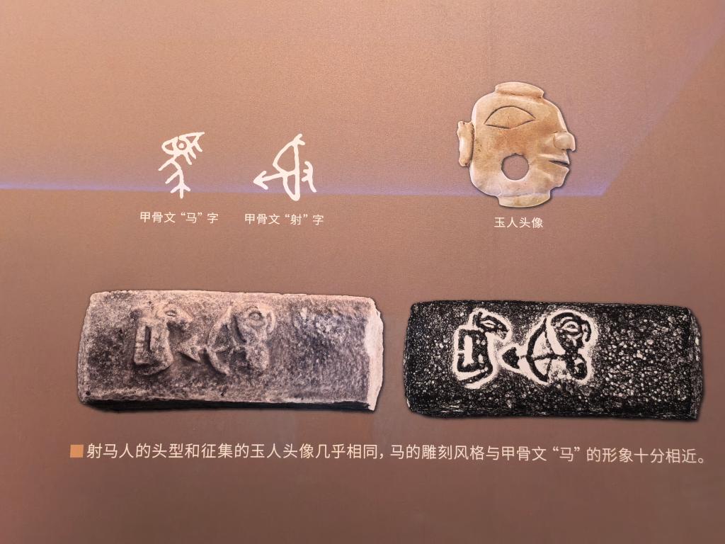 关于石峁遗址出土的射马人石雕的展示讲解。新华社记者 张京品 摄