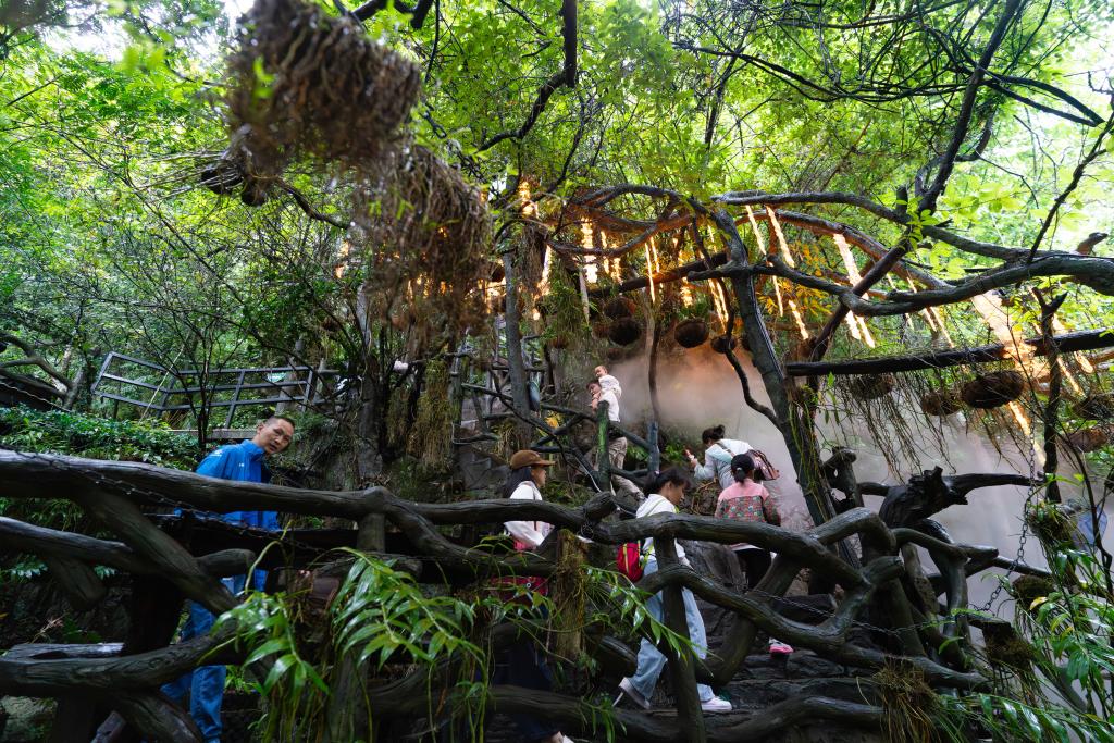 8月27日,游客在广南县六郎城村“六郎城·仙草秘境”景区游览。