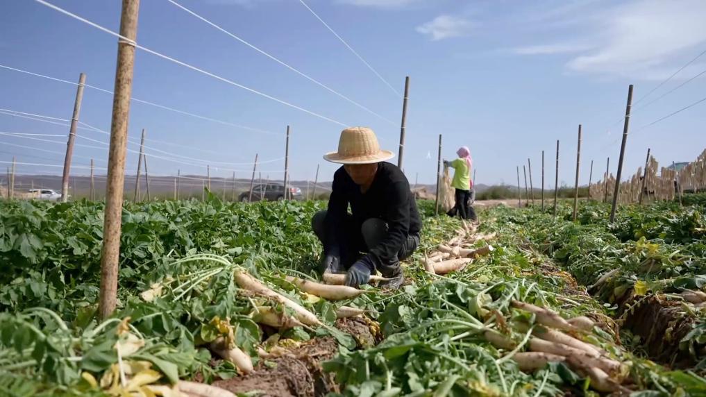在宁夏吴忠市红寺堡区大河乡平岭子村,1500亩长美萝卜迎来丰收季。