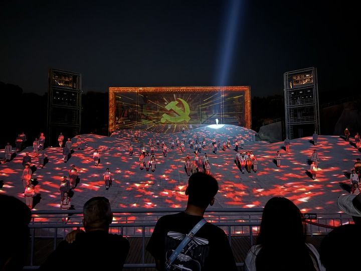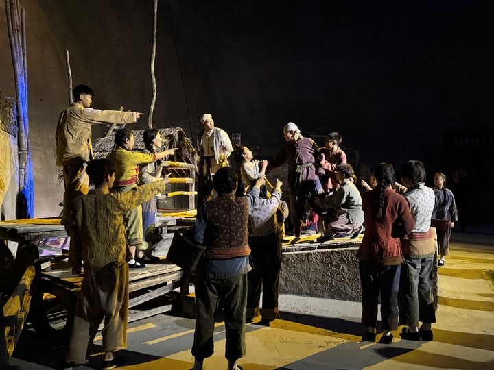 巍巍太行作幕,苍茫夜色为景。武乡太行龙湖畔,雄浑的歌声响彻山谷,大型沉浸式情景剧《太行山上》缓缓拉开序幕。“戏在景中、人在戏里”的演绎方式,将人们带回到那段烽火连天的岁月。