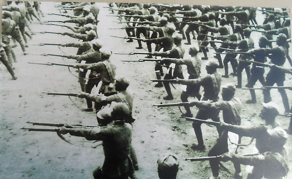 抗战时期,山西青年抗敌决死队第1纵队25团8连官兵发扬白刃格斗精神,训练中苦练刺杀(资料照片)。新华社发