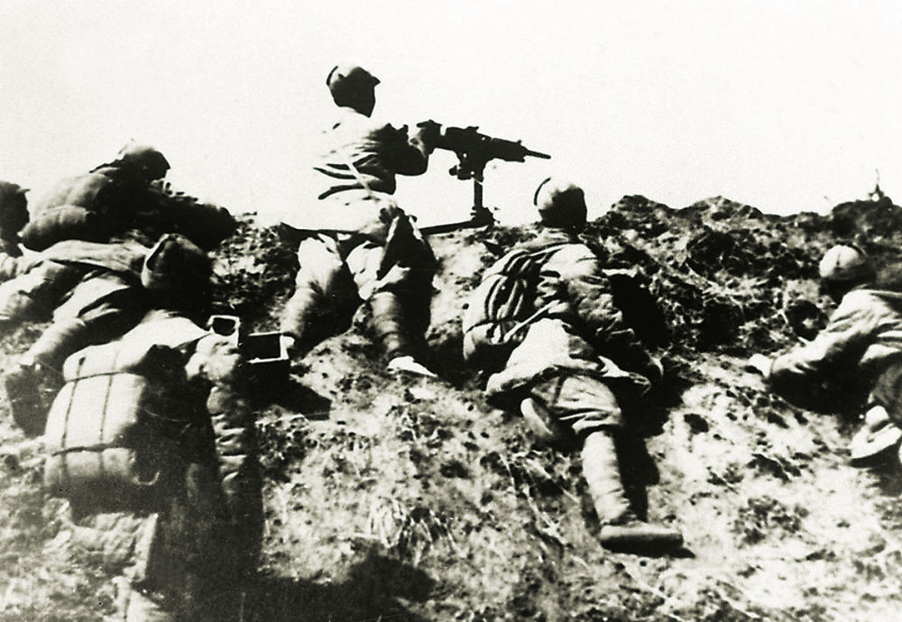 图为平型关战斗中,115师某部的机枪阵地(资料照片)。新华社发