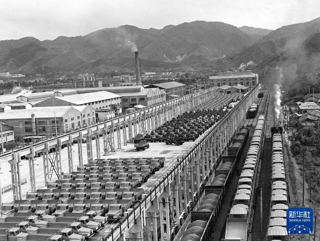 1984年,二汽生产的EQ140载货车源源不断地运往全国各地。新华社记者 花皑 摄