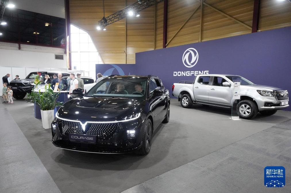 2025年4月27日,在拉脱维亚里加,人们在“2025里加波罗的海汽车展览会”参观东风展台。 新华社发(艾迪斯·帕伦斯 摄)
