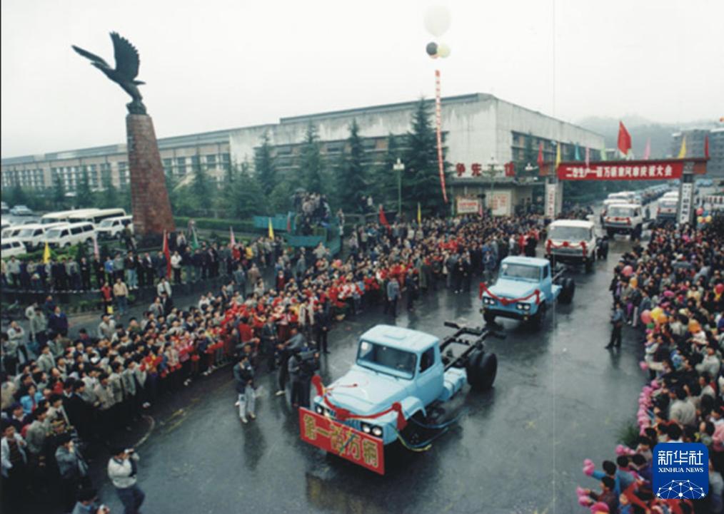 1987年,第二汽车制造厂庆祝年产量突破10万辆大关。新华社发