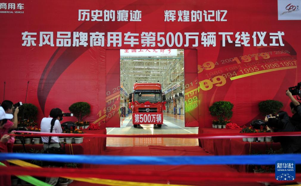 2009年9月21日,东风品牌商用车第500万辆在十堰基地下线。新华社发