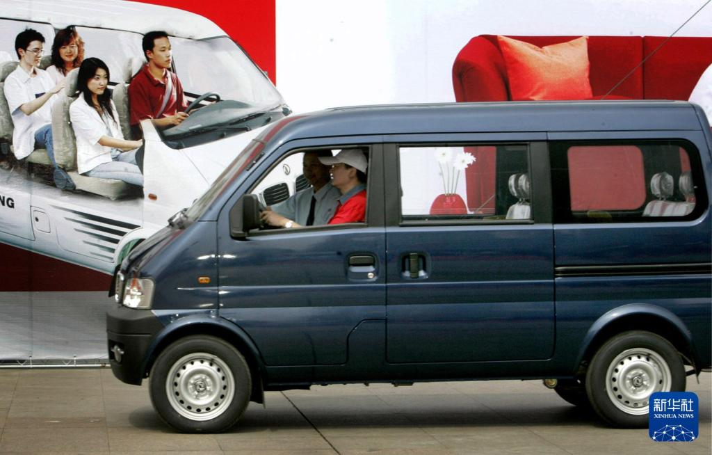 2005年5月22日,一辆刚刚上市的“东风小康”微型车从其广告牌前驶过。 新华社记者 陈建力 摄