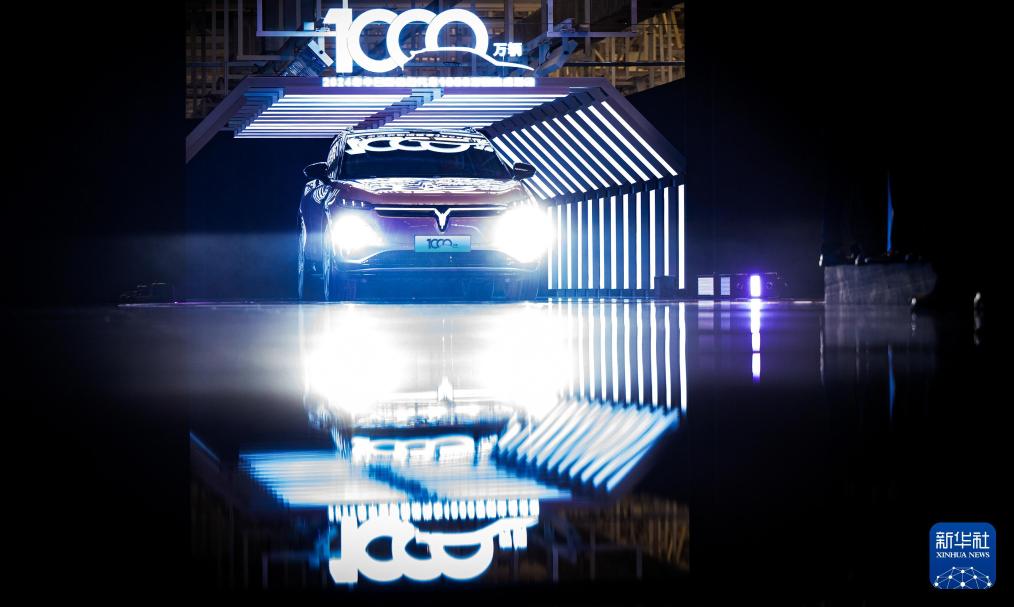 2024年11月14日在湖北武汉拍摄的2024年中国新能源汽车1000万辆达成活动现场。新华社记者 肖艺九 摄