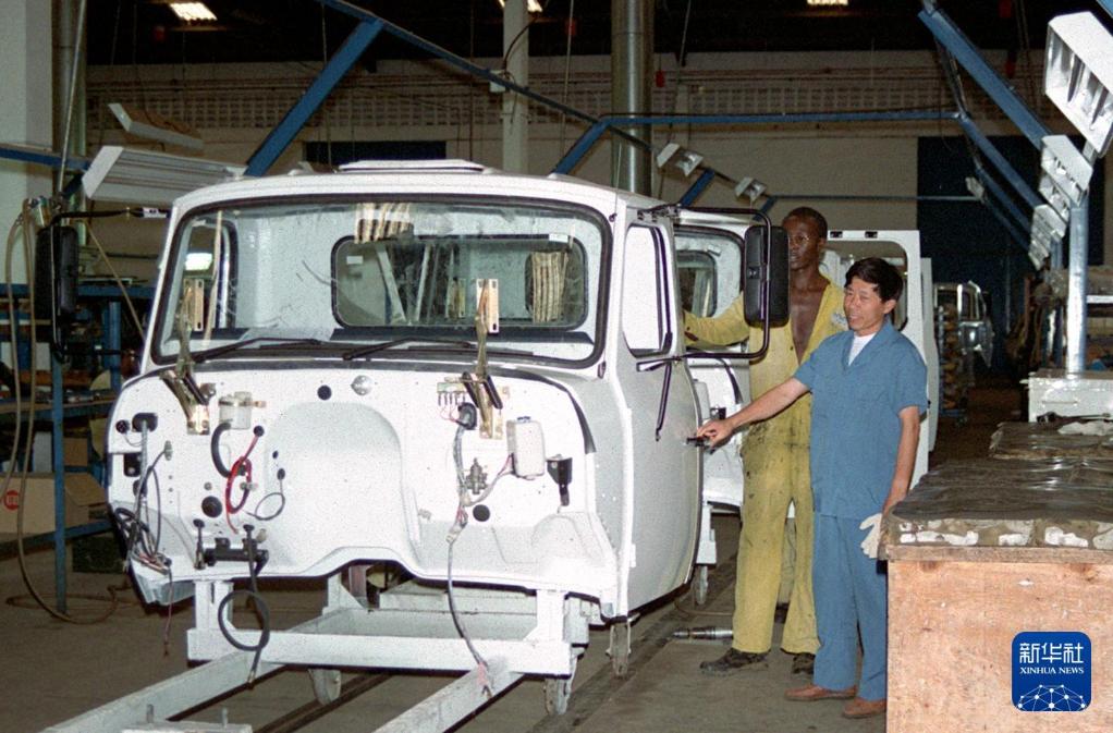 1996年4月7日,中国和肯尼亚的技术人员在内罗毕KVM汽车装配厂一起组装东风牌汽车。新华社记者 俞跃良 摄