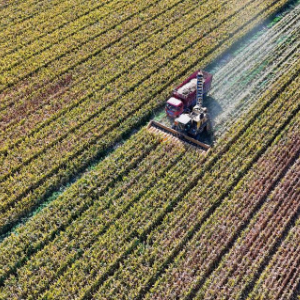在新疆伊犁哈萨克自治州新源县的农田里,收割机在采收玉米。(受访单位供图)
