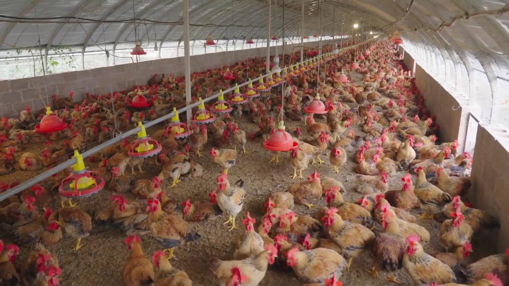 在富源县的松林养鸡场大棚,1200余只鸡苗生长状况良好。当地将闲置的矿厂改造为现代化的养鸡大棚,松林村委会周边600余名村民,在家门口有了一份稳定的收入。