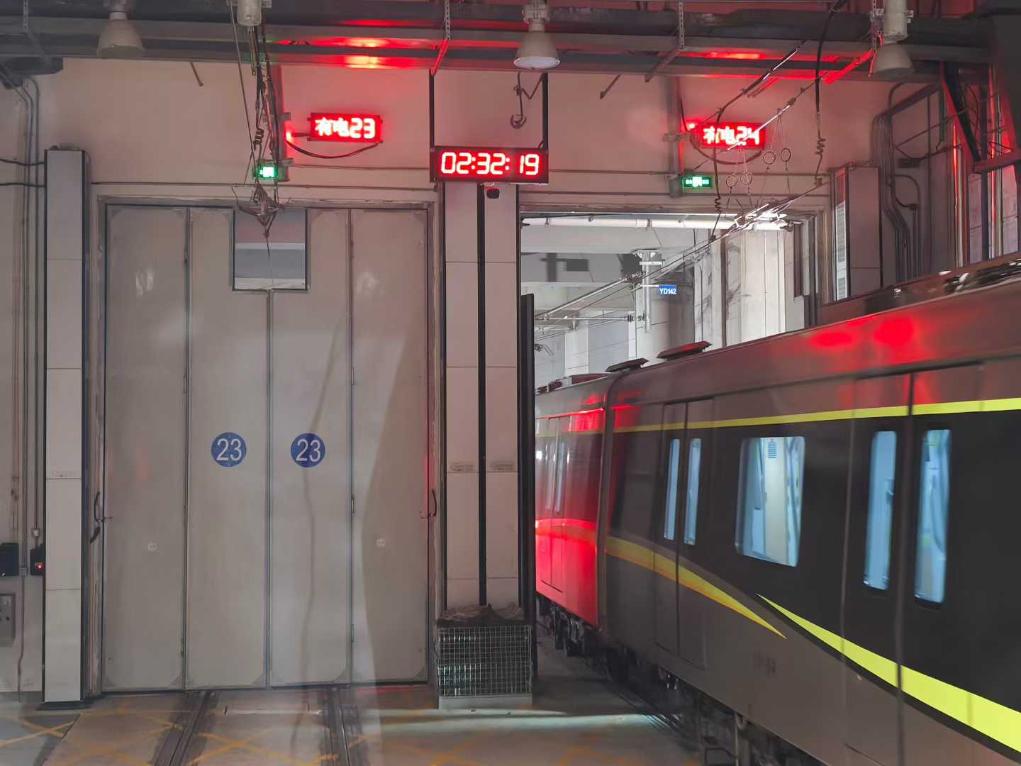 1月1日,地铁列车驶入车库。新华社发