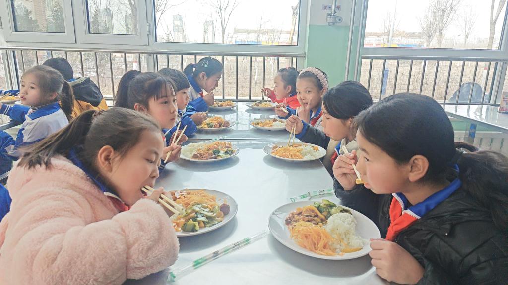 贺兰县第十小学中午组织从立岗小学和兰光小学转来的学生到学校附近的中学就餐。(受访者供图)