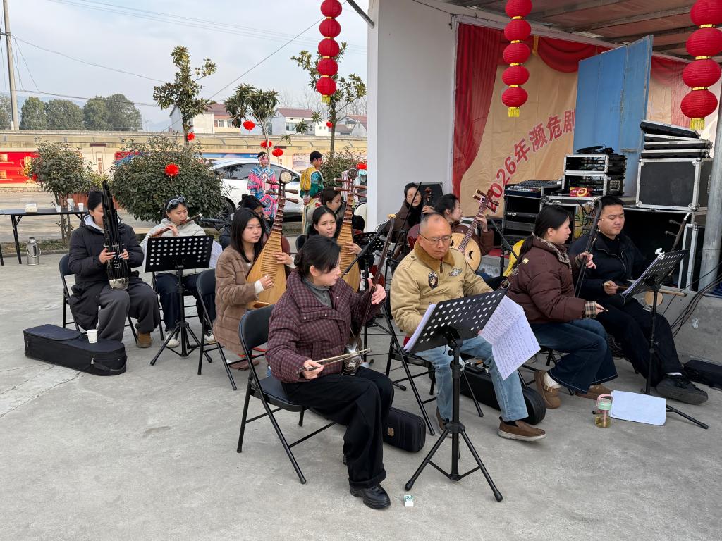 图为陕西省汉中市南郑区汉调桄桄传承发展中心送戏下乡演出现场。新华社记者刘彤 摄