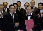谢旭人和曾荫权签署内地与香港避免双重征税安排