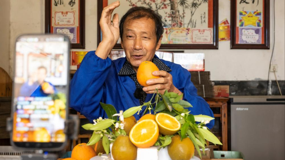 湖北秭归:七旬果农直播带橙出三峡