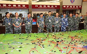中俄联合反恐军事演习中方导演部展开正式演练
