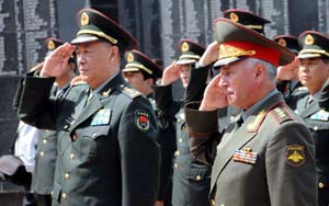 中俄两军总参谋长共同宣布反恐军演开始