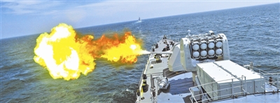 “宁要贴近实战的低分,不要脱离实战的高分”,是海军训练演习的指导思想。这是2014年5月24日,在东海某海域举行的中俄“海上联合-2014”军事演习中,哈尔滨舰主炮实弹射击。胡锴冰 摄
