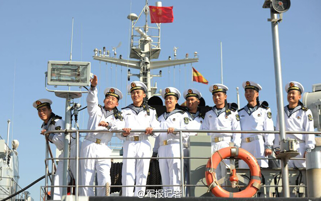 “穿上久违的水兵服,显得格外自豪!”1月1日,8名身穿水兵服的东海舰队某水警区靖江舰初级士官在甲板上畅谈新年梦想。从2015年1月1日起,海军男初级士官正式换着水兵服,原配发的海军士官大檐帽、春秋常服、冬常服和长袖夏常服停止穿用。