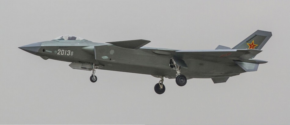 2013号歼-20,于11月29日成功首飞。与此前歼-20的各架验证机和原型机不同,有报道称2013号歼-20一个明显的特征是取消了机头空速管。(图片鸣谢:鼎盛军事 凰天霸)