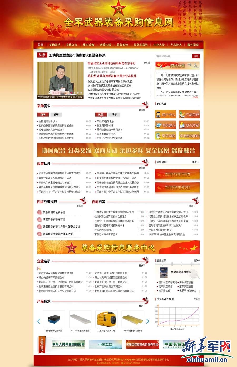 全军武器装备采购信息网网页截图