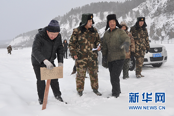 5日,黑龙江大兴安岭边防支队北极边防派出所民警与辖区北极村五十余名群众冒着寒风,对中俄界江黑龙江北极村段冬季生产作业点进行合理划分。这是这个所为保护界江生态资源、防止产生界江冬季生产作业纠纷采取的有效手段。(褚福超)