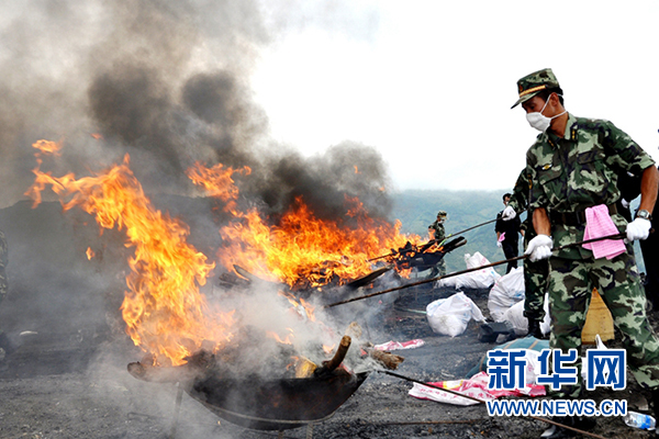 2014年5月30日,历经一年的缜密侦查,这个总队德宏边防支队侦破一起跨国贩毒案,成功摧毁了一个跨国贩毒团伙,抓获贩毒嫌疑人7名,缴获毒品海洛因174.74千克、冰毒0.625千克。2013年8月18日,德宏边防支队瑞丽边防大队在辖区一出租房内缴获用黄色胶带包裹的块状毒品海洛因47.804克,抓获贩毒嫌疑人两名。从案件中,这个支队获取了一条重要线索:境外一贩毒团伙长期在我国境内秘密贩卖毒品。为此,这个支队迅速抽调精干力量组成专案组深入调查。经过跟踪侦查,2014年5月30日,专案组展开收网行动,抓获这个团伙主要成员3名,缴获毒品海洛因共计126.936千克、冰毒0.625千克。2014年5月31日,这个支队抓获犯罪嫌疑人2名,共抓获这个团伙贩毒嫌疑人5名。