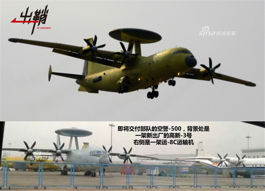 空警-2000和空警-200不仅参加了2009年国庆50周年阅兵式,也均在2014年珠海航展上公开亮相,这意味着,性能更先进的预警机也即将服役。果不其然,今年元旦,代表了21世纪第二个十年我国预警机先进技术的空警-500预警机以服役涂装亮相,实现了王院士“小平台,大预警”的理念。