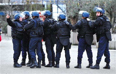 10日,法国巴黎,警察在一个犹太教会堂附近巡逻。该地被指发生激烈枪声,最后发现是鞭炮声,系错误报警。