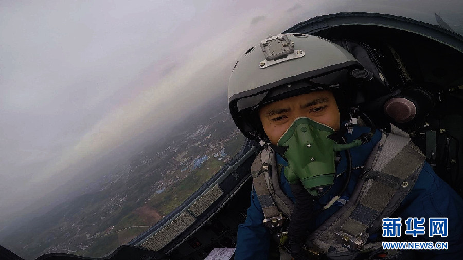 蒋佳冀驾驶战机升空,直奔目标空域展开空战训练。新华社发 刘应华 摄