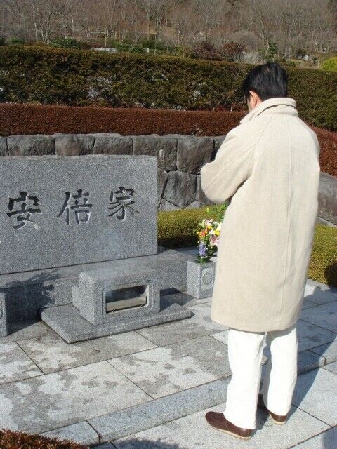 日本首相安倍晋三1月11日前往静冈县小山町富士陵园,为外祖父岸信介和父亲安倍晋太郎扫墓,并向他们报告了自己2年来的执政业绩及获得众院大选胜利,以及组建了第三次内阁的情况。