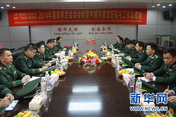 应广西边防总队防城港边防支队邀请,9日至11日,越南广宁省边境一线各边防屯代表团一行9人与这个支队在东兴市举行2014年第四季度会谈会晤。