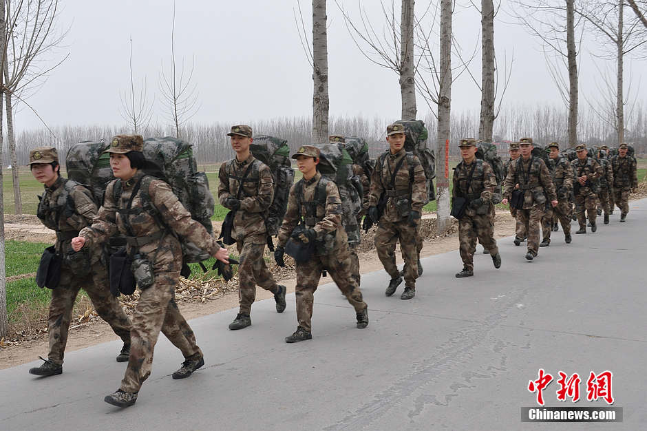 解放军女兵负重60斤拉练 昼夜强行军50公里