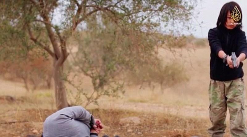 据英国《每日邮报》1月13日报道,“伊斯兰国”(IS)恐怖组织13日公布一段影片,两名在叙利亚被抓获的俄罗斯间谍遭到枪决,而行刑者居然为一名年约10岁的小孩。