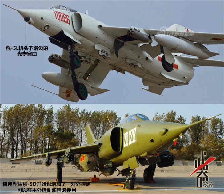 因此空军又提出强-5C/D升级方案,分别被称作强-5L/N。于2005年4月和10月首飞成功。强-5L飞机的主要改装是改进平显火控系统及相关机载设备,兼容激光照射和激光弹投放功能,扩大激光制导炸弹投放包线,具备夜战能力,适应加装新型制导武器的需求。强-5N的导航设备更加完善。