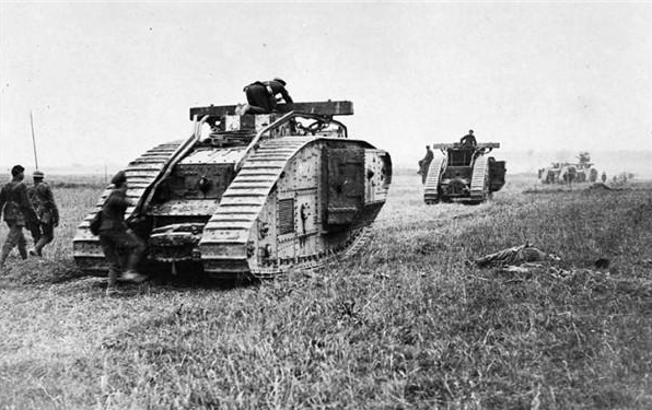 1916年6月24日开始,英、法联军在法国北部索姆河地区发动了对德军的一次阵地进攻战。德军阵地上突然出现了一个又一个“怪物”。它横冲直撞,前面还“吐着火舌”,德军阵地堑壕被碾平,阵地上的枪、炮被碾坏,不少德军士兵还被它的“火舌”打死打伤。当德军步兵用步枪对“怪物”猛烈射击时,这个“怪物”却若无其事,继续向前走。对此,德军大为惊恐……这是英军也是世界上第一次将坦克运用于战场的情况。坦克的问世,标志着陆军机械化时代的开始。
