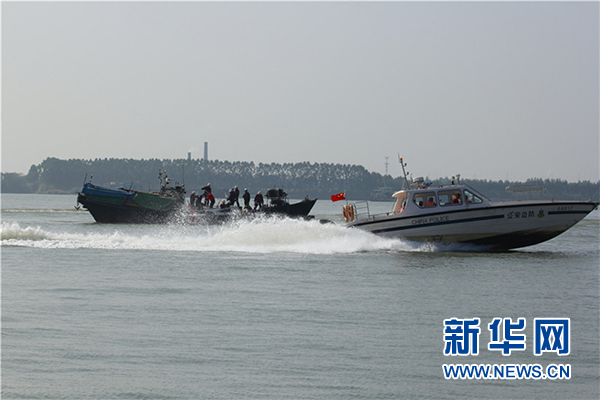 演练中官兵正在拦截企图逃逸的“走私渔船”