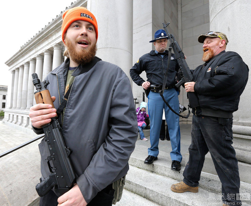 组图:美国民众持枪占领议会大厦抗议禁枪