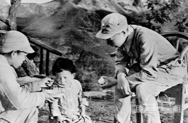 “将军与幼女”组照6幅(选一,1940年8月,沙飞摄)