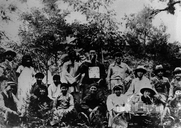《红色剧团》虽是一幅普通的演员合影照片,但角色、神态、情感各有不同,人物或坐或站,上下错落有致,画面统一中显出变化;以茂密的树林为背景,更增添了美感,十分引人入胜。上图为八路军第115师战士剧社青年队(由红一军团的红色剧团改编扩建)1938年在晋西演出时留影。认真的表演、健美的身影、欢乐的神情都给人留下美好、深刻的印象。